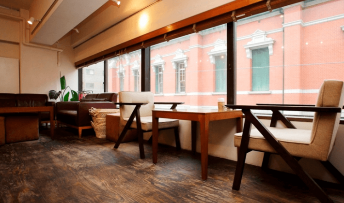 レトロな佇まいの「三条御幸町 1928ビル」の2階にあるカフェです。